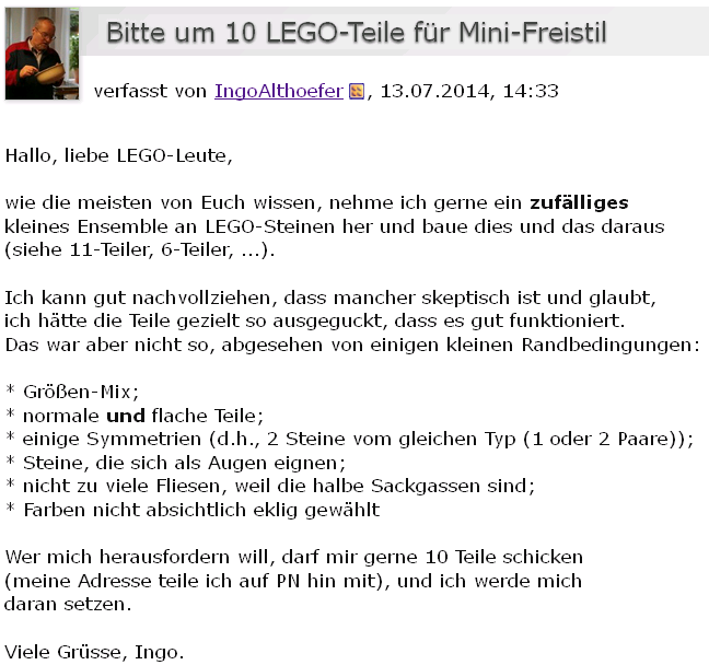 Leute durften mir 10 zufällig gewählte LEGO-Steine