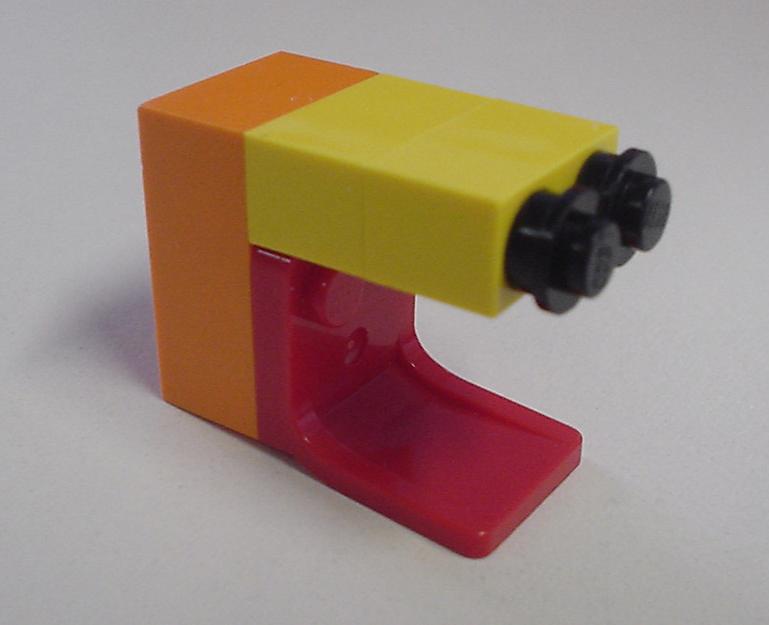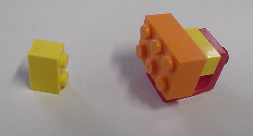 Only six LEGO pieces were available: one 3x2-brick in orange,