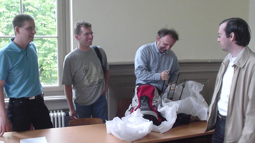 In the background Jakob Erdmann (first recipient of a 3-Hirn grant)