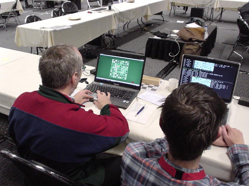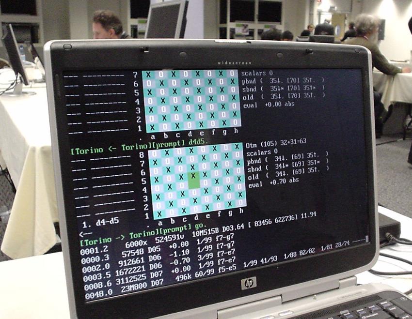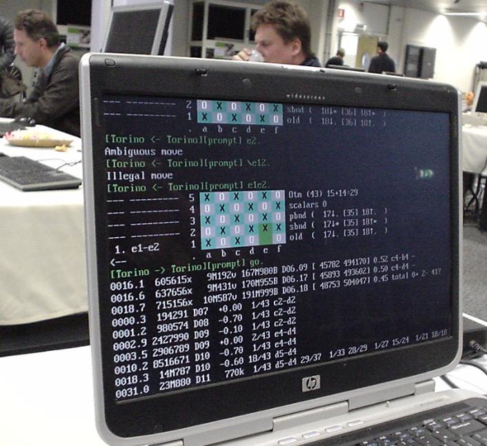 Pan has just computed his first move in the second 6x5-game. Behind the monitor,