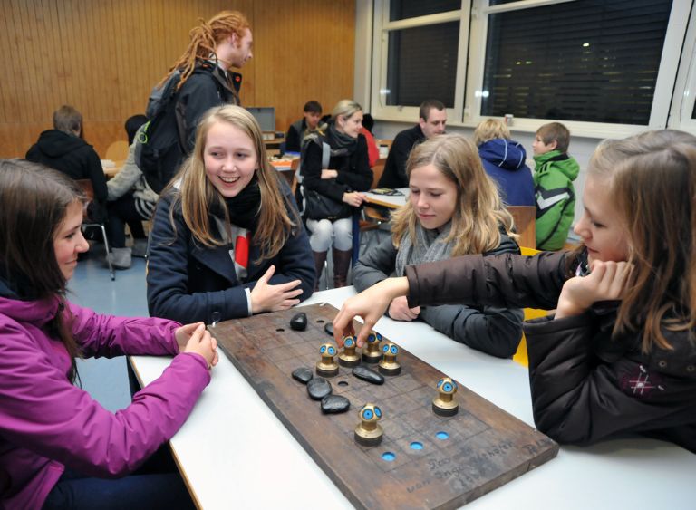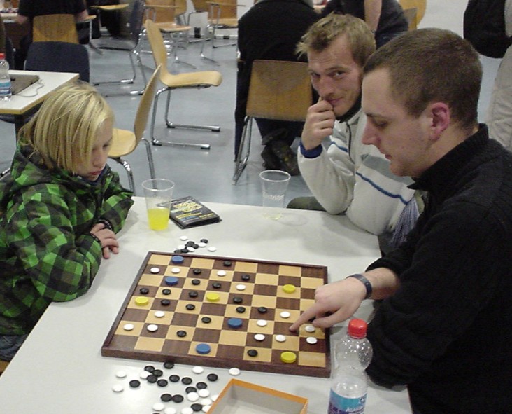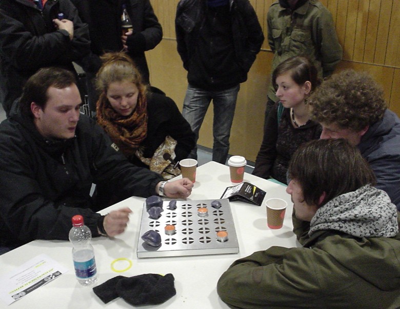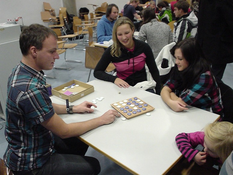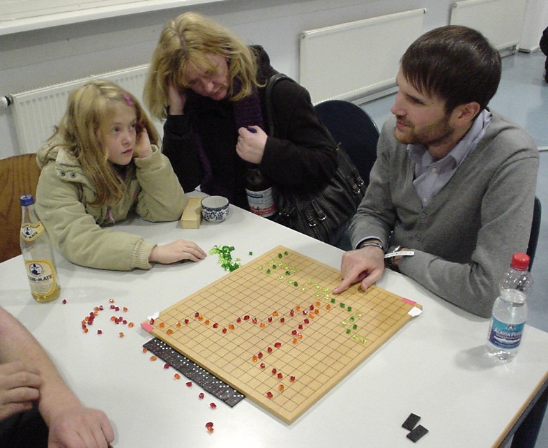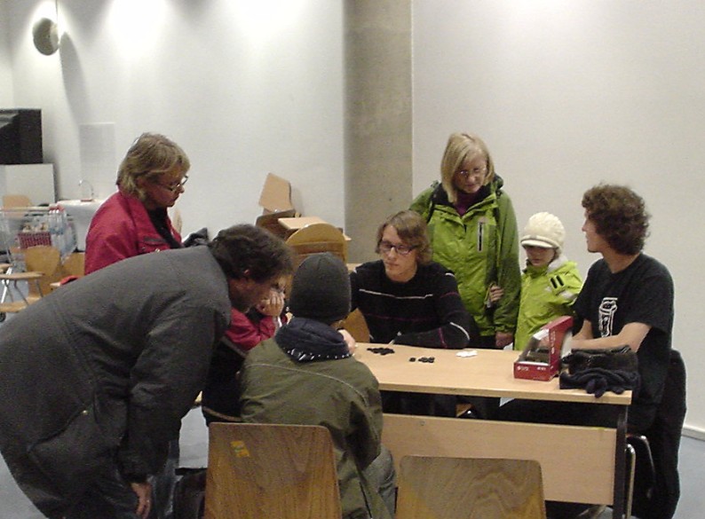 Im Hintergrund ist der Tisch der Jenaer Go-Gruppe, mit der wir