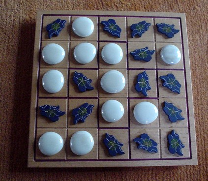 Odoku is an abstract game with simple rules for two players, invented by Ingo Althofer in July 2011. The two players are named B (like Balancer) and A (like Anti-Balancer). The second part of its name O-doku shall indicate that the game is somewhat related to Sudoku.