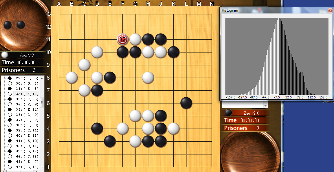 Each Monte Carlo playout gives a score between -169 + 7.5 (best possible outcome